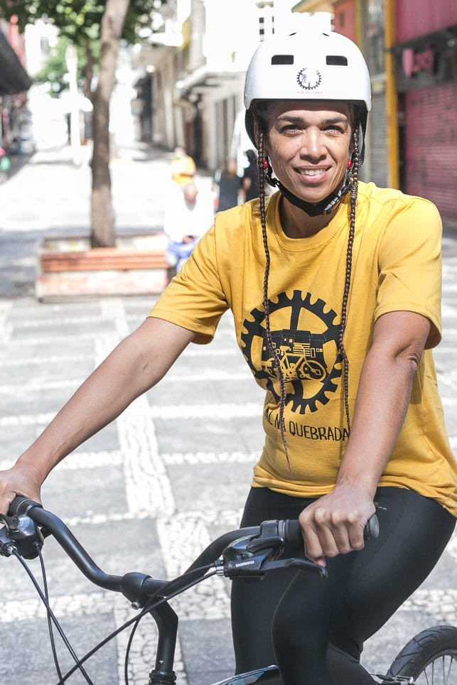 Graduada em Educação Física. Pós-graduada em Arte Integrativa. Diretora da Ciclocidade. Idealizadora dos projetos Pedal na Quebrada e Mapa Pedal Afetivo. Ciclista criada na Vila Santa Catarina. Mulher negra, feminista, artista cênica e das palavras, mãe da Maju, e apaixonada na Educação Inclusiva, através do esporte e da Dança.